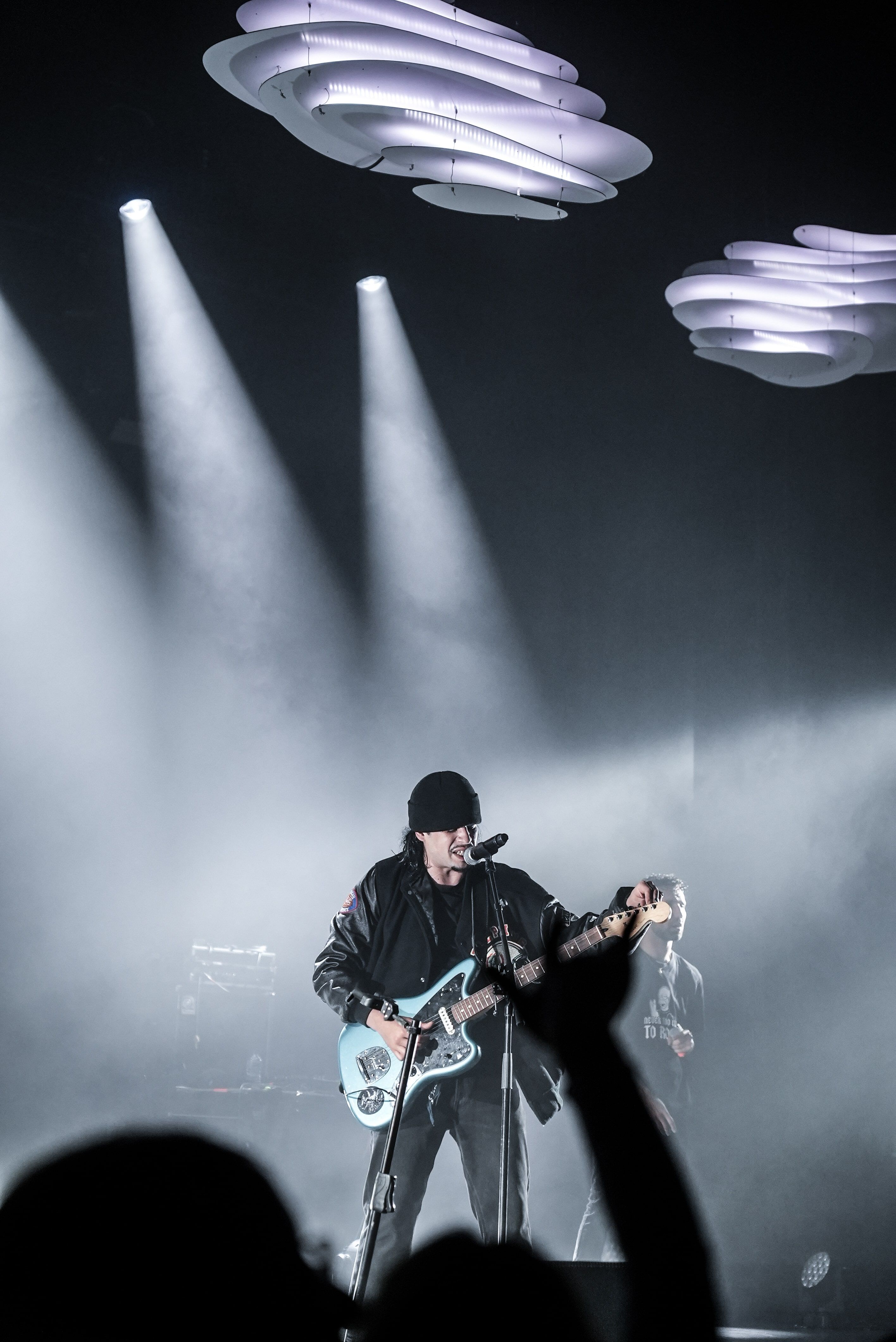 La scénographie de ce projet est composée de trois nuages suspendus, dont le design est constitué de plaques superposées avec de la LED entre elles, créant du volume et de la dynamique. L’éclairage venant en partie du sol, est percutant pour coller à l'univers rock de Sopico.