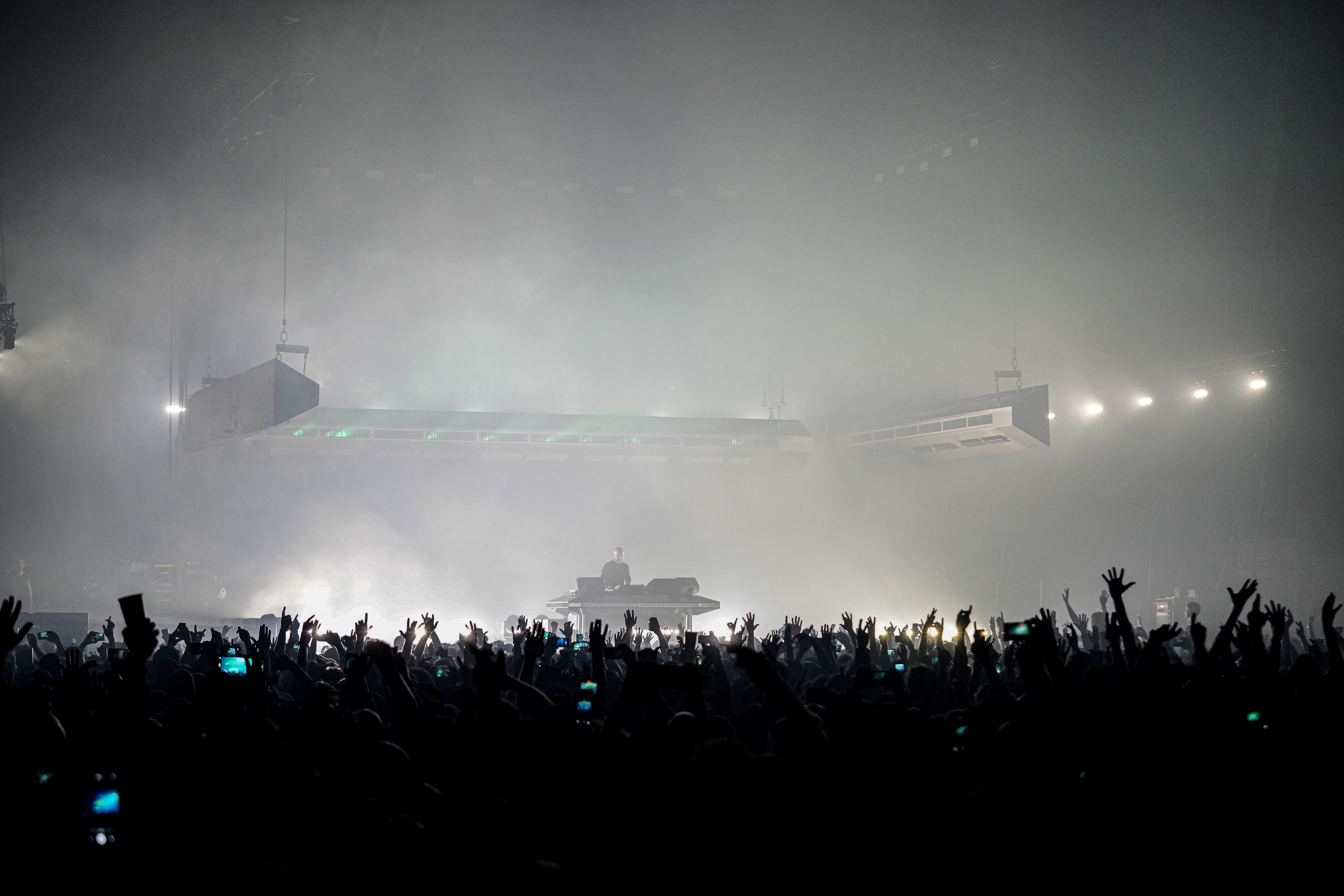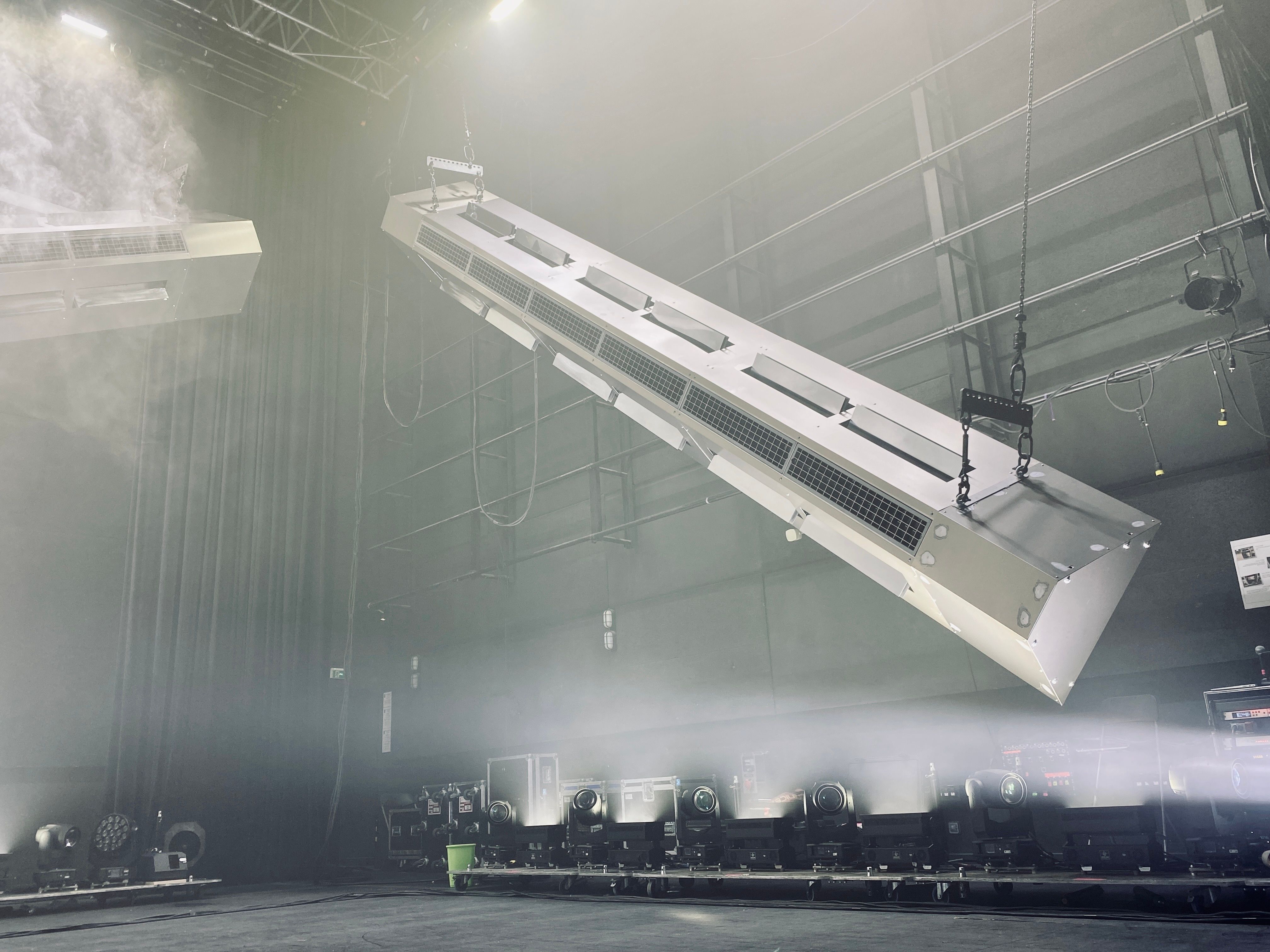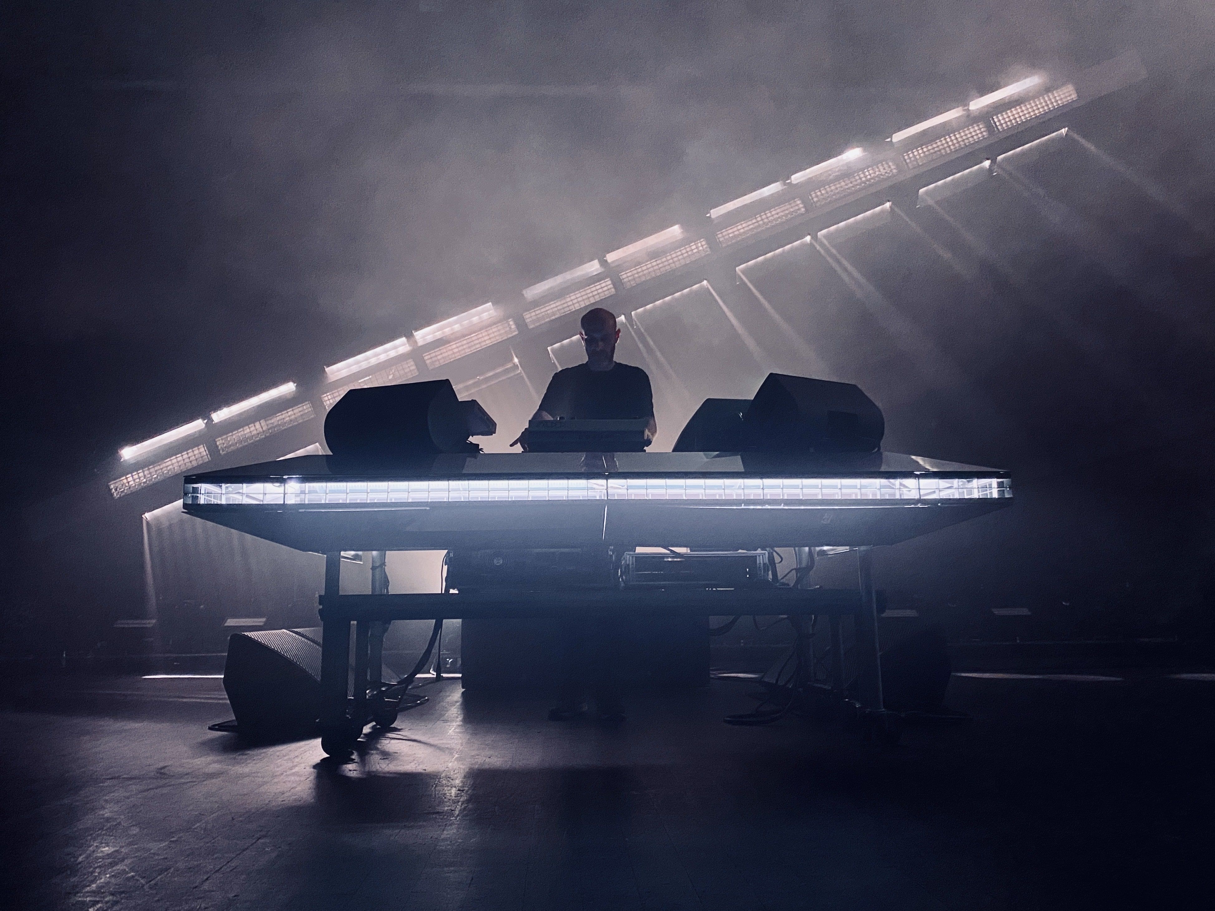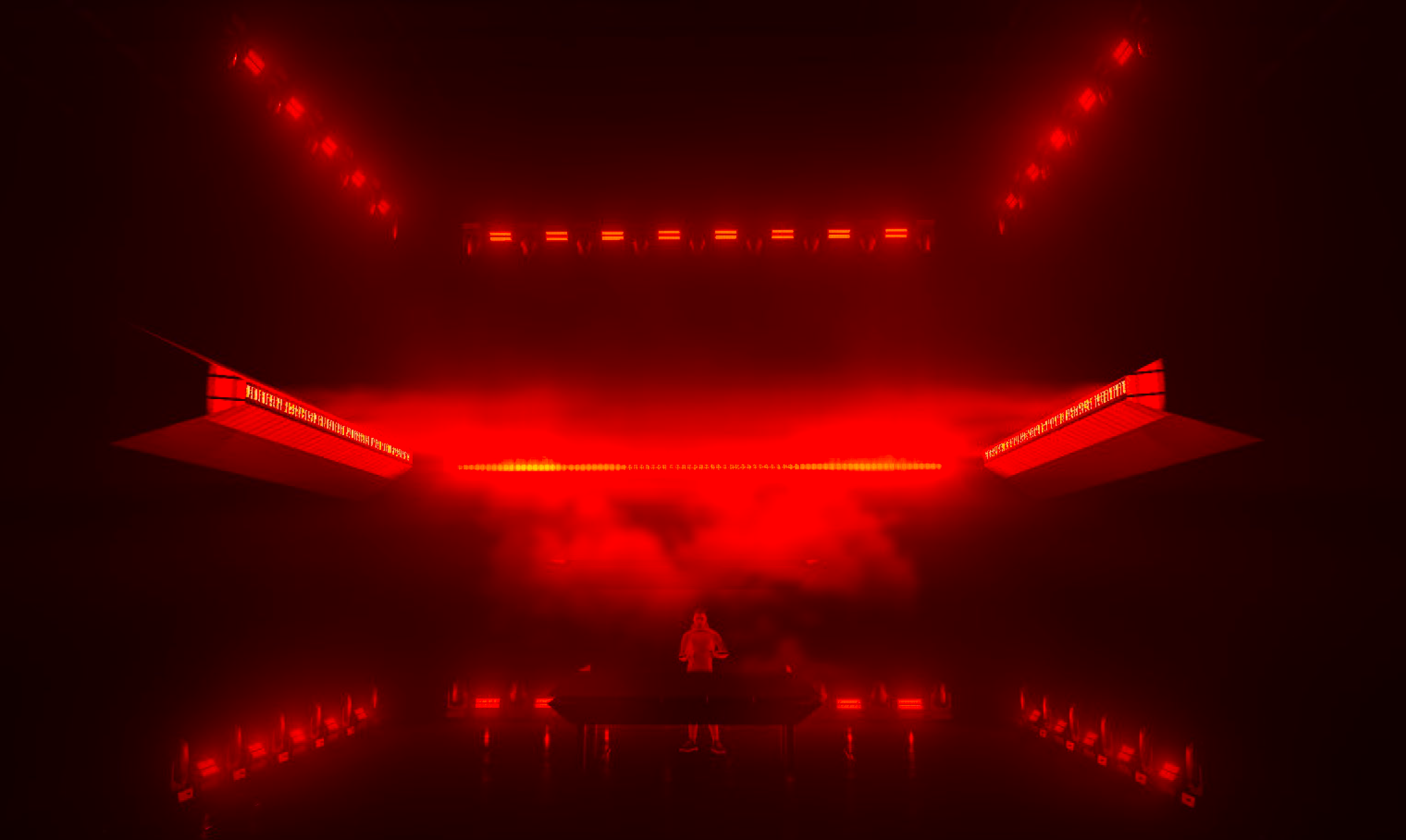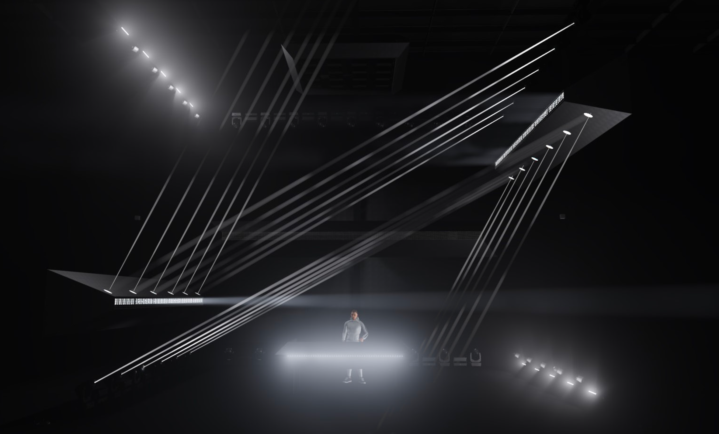 La scénographie pour la tournée Dissidence de Vitalic adopte une esthétique brute et industrielle, avec trois poutres équipées de lumières linéaires, de machines à fumée et de faces miroirs. Les poutres sont sur moteurs pour créer des mouvements dynamiques, permettant de déconstruire l'espace scénique et de proposer une expérience visuelle unique pour chaque tableau.